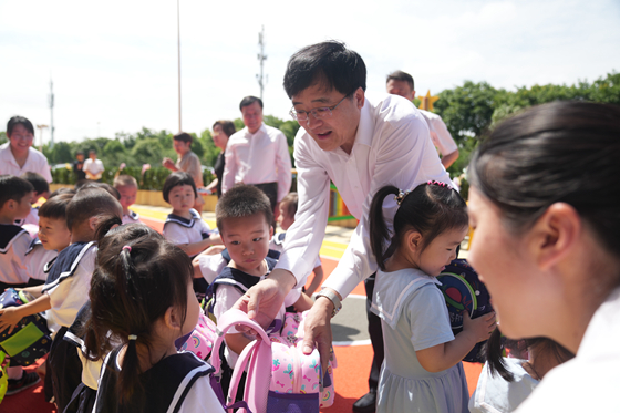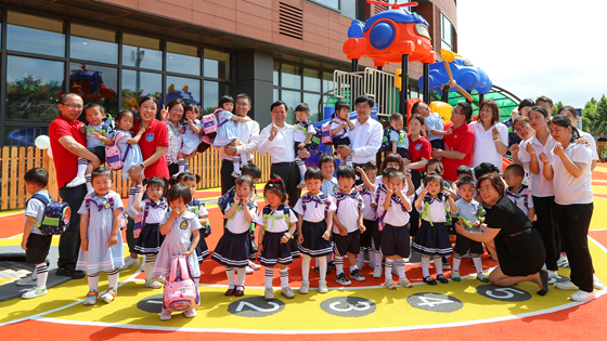 2023年6月1日,中國商飛公司黨委書(shū)記、董事長(cháng)賀東風(fēng),黨委副書(shū)記、董事譚萬(wàn)庚來(lái)到大飛機金科托育園,與大家共度“六一”,為新建成的“大飛機金科寶貝樂(lè )園”揭牌。