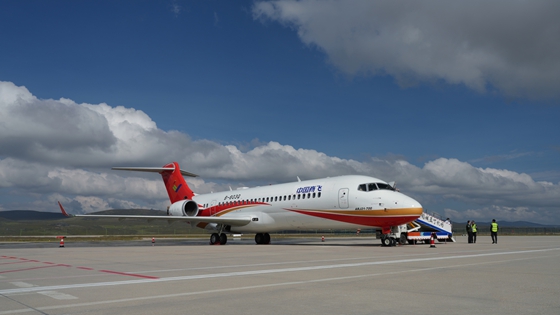 2024年8月25日,中國商飛公司一架ARJ21飛機從成都雙流國際機場(chǎng)起飛,經(jīng)過(guò)44分鐘的飛行,順利抵達稻城亞丁機場(chǎng),這是正在進(jìn)行的ARJ21飛機“環(huán)青藏高原”演示飛行的重要一站。