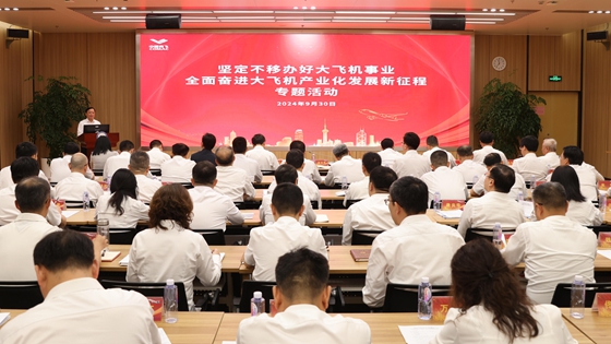 2024年9月30日,在習近平總書(shū)記會(huì )見(jiàn)C919大型客機項目團隊代表并參觀(guān)項目成果展兩周年之際,中國商飛在設計研發(fā)中心舉辦“堅定不移辦好大飛機事業(yè) 全面奮進(jìn)大飛機產(chǎn)業(yè)化發(fā)展新征程”專(zhuān)題活動(dòng)。本次活動(dòng)的主要任務(wù)是深入貫徹落實(shí)習近平總書(shū)記關(guān)于大飛機事業(yè)重要指示精神,繼續保持昂揚斗志,堅定不移推動(dòng)習近平總書(shū)記交辦的三大任務(wù),堅定不移推動(dòng)型號研制和產(chǎn)能提升取得新突破,堅定不移推動(dòng)大飛機事業(yè)安全發(fā)展高質(zhì)量發(fā)展。公司黨委書(shū)記、董事長(cháng)賀東風(fēng)出席會(huì )議并講話(huà),黨委副書(shū)記、董事譚萬(wàn)庚主持會(huì )議,黨委常委魏應彪、沈波、戚學(xué)鋒、于世海、羅興平、李玲出席會(huì )議。