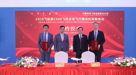 2024年11月12日,在第十五屆中國國際航空航天博覽會(huì )上,中國商飛與加拿大飛行模擬機制造商CAE簽訂了4臺C919和4臺C909全動(dòng)飛行模擬機采購協(xié)議。這些飛行模擬機交付后,將用于開(kāi)展相應的初始、轉機型、復訓等訓練業(yè)務(wù),以滿(mǎn)足不斷增長(cháng)的飛行員培訓需求。(圖/華思清)