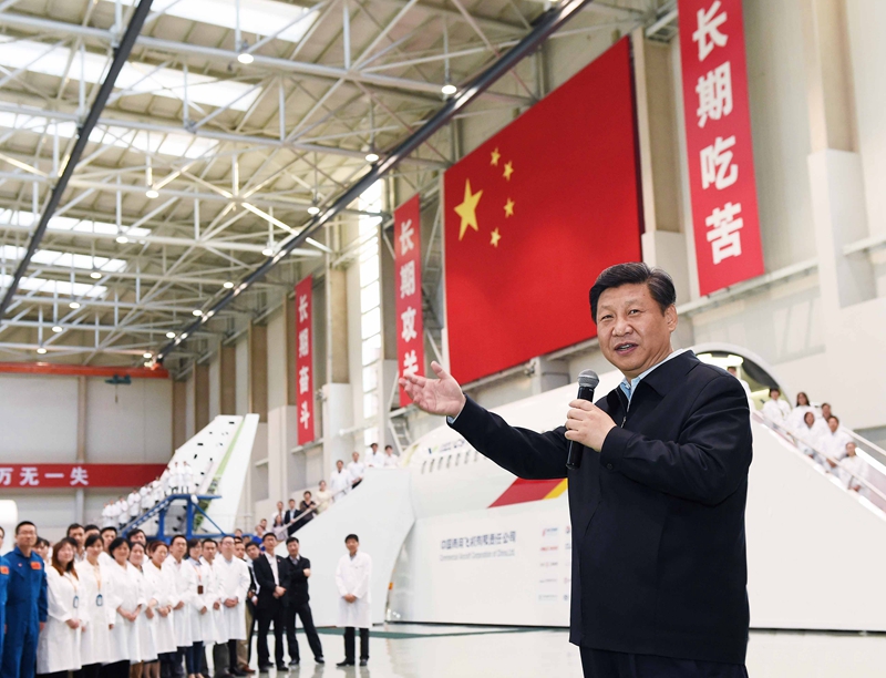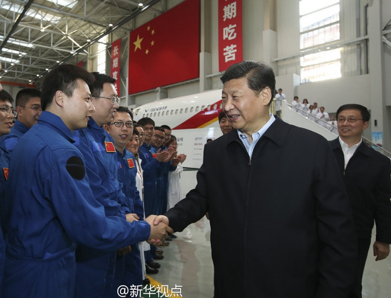 2007年9月20日,在即將打響攻堅戰的總裝廠(chǎng)房里,在“綠皮”的ARJ21飛機前,習近平講到,新支線(xiàn)飛機項目承載著(zhù)黨和人民的重托,承載著(zhù)中國民航產(chǎn)業(yè)發(fā)展的歷史使命?!靶轮Ь€(xiàn)飛機項目的立項建設,充分體現了中華民族的自強自立,充分顯示了我國在航空領(lǐng)域占有一席之地的決心。要盡最大努力,盡最大可能,建設好這個(gè)項目,努力為我國航空戰略的發(fā)展多做貢獻?!保ㄕ孕氯A社文章)