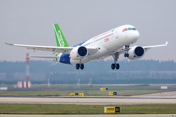2017年5月5日,C919大型客機首飛成功,標志著(zhù)我國大型客機項目取得重大突破,成為我國民用航空工業(yè)發(fā)展的重要里程碑。首飛成功后,中共中央、國務(wù)院發(fā)來(lái)賀電。(摘自新華社文章)